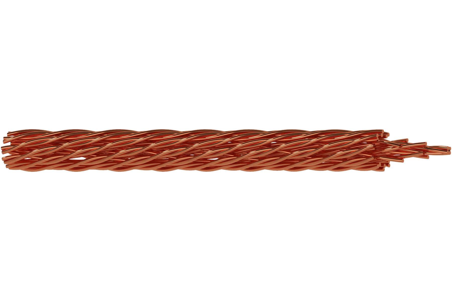 Conductor desnudo de cobre formado en pares y cuadretes cableados entre sí en temple suave.