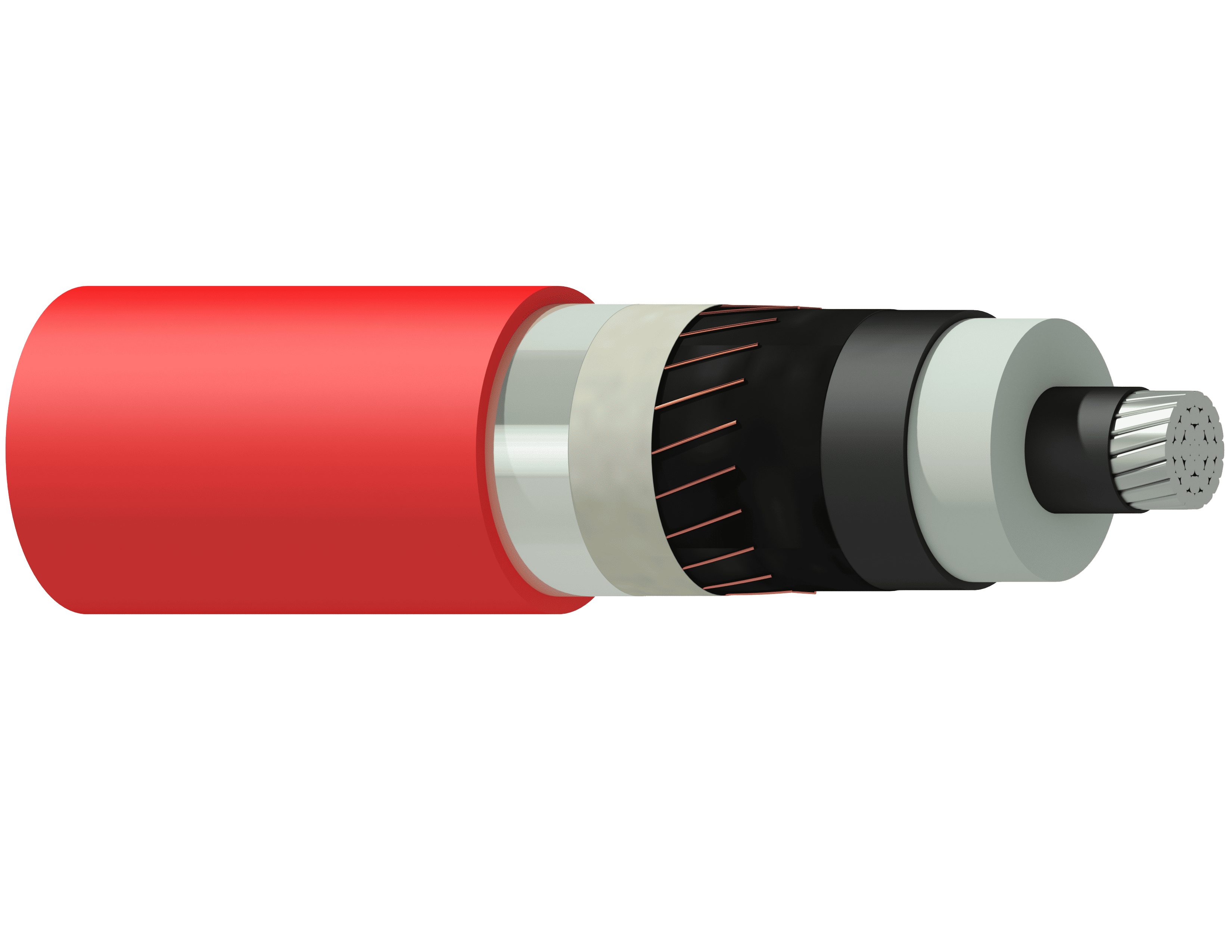 Conductor de cobre en temple suave o aluminio (AAC) en temple duro o aluminio con núcleo de acero (ACSR) con capa semiconductora sobre el conductor y aislamiento cubierta de polietileno de cadena cruzada en color negro (XLP).